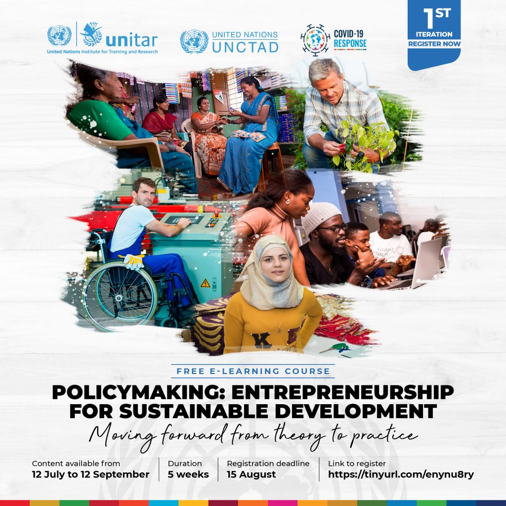 UNITAR, en asociación con la Conferencia de las Naciones Unidas sobre Comercio y Desarrollo (UNCTAD), está organizando el lanzamiento oficial de su nuevo curso conjunto «Elaboración de políticas: Emprendimiento para el desarrollo sostenible».